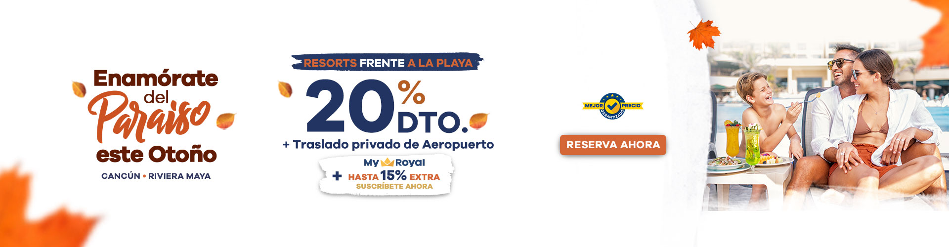 Embárcate en unas vacaciones inolvidables en Cancún y la Riviera Maya. Ya sea que viaje con tu familia, tu pareja o amigos, nuestros impresionantes resorts frente a la playa ofrecen la combinación perfecta de relajación y diversión. Relájate y crea recuerdos preciados a lado de tus seres queridos mientras disfrutas de la mejor experiencia vacacional solo en Royal Resorts.